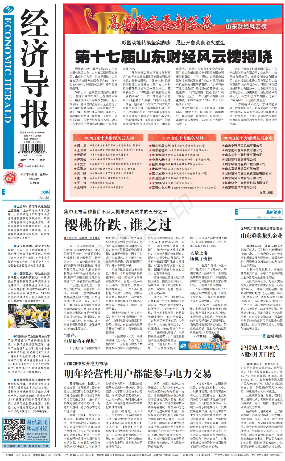 周末,第十七屆山東財(cái)經(jīng)風(fēng)云榜舉行評審會(huì),由山東省委財(cái)經(jīng)辦常務(wù)副主任,省發(fā)改委黨委副書記、副主任郝憲印,山東財(cái)經(jīng)大學(xué)副校長綦好東,山東省互聯(lián)網(wǎng)傳媒集團(tuán)總編輯劉加增等十位評委投票評審,公司被選為山東十大服務(wù)品牌。