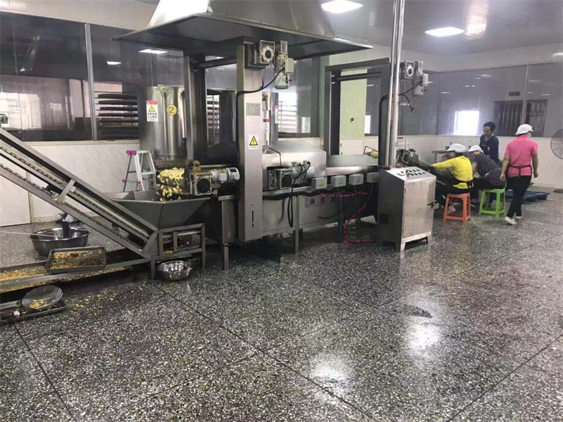 上圖是光銳機(jī)械有限公司為客戶設(shè)計(jì)的腐竹油炸流水線油炸腐竹現(xiàn)場,全不銹鋼材質(zhì)。