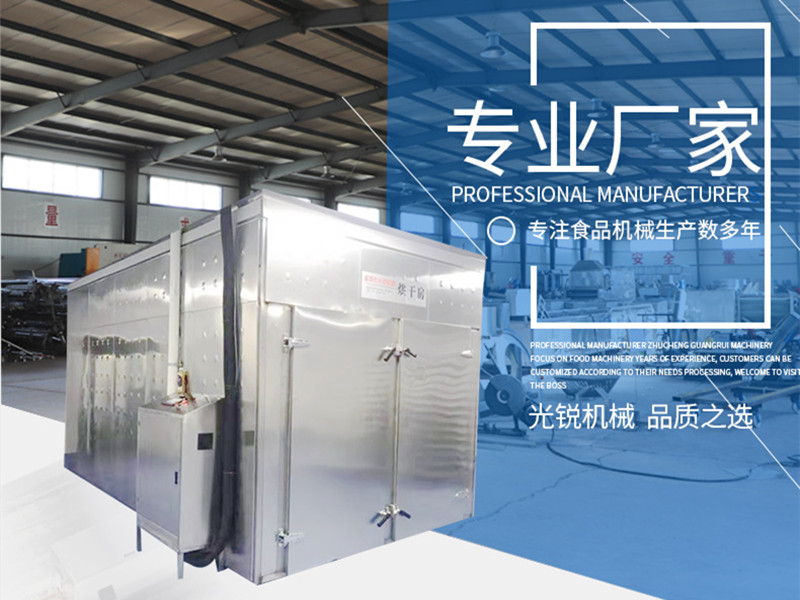 光銳機(jī)械有限公司小型不銹鋼烘干房適合小產(chǎn)量果蔬、蒜片、辣椒、香蔥、素肉干、肉干等蔬菜、果品、藥材、木耳等條狀、片狀、顆粒狀食品烘干。外形尺寸可根據(jù)客戶要求設(shè)計(jì)制作。